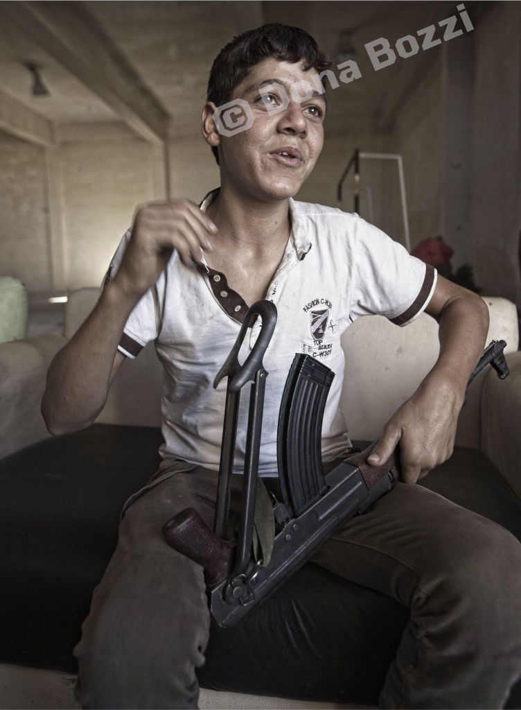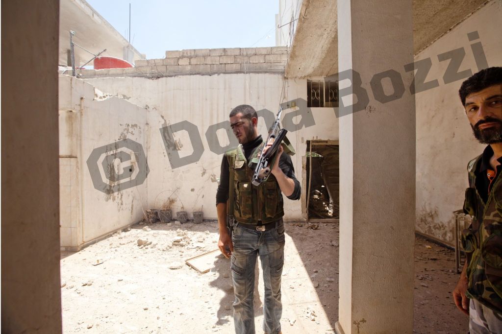While hopping from one trembling stone to another in the remains of a gutted house, suddenly Hany Souci, Anas’s brother, whispered: “speed, speed!”, as if he was trying to push us out of the field of view of a telescopic iris. Later that day, the FSA rebels showed us a 14,5 mm bullet coming from a BMT tank, which had killed a Sunni of Syria, exactly in the area where we had carried out the inspection.