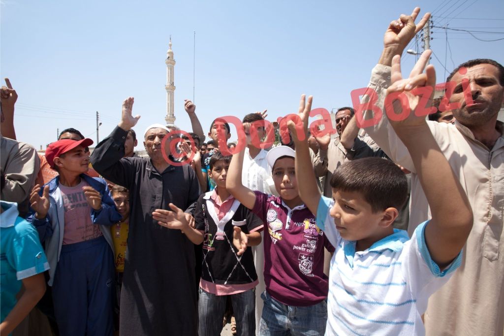 friday, traditionally demonstration day in rebel held cities,such as Khan Sheik Houn. Our friends warned us that the shabiha snipers might be wholesale shooting at demonstrators from the rooftops: so our eyes raked the opposite roofline searching for a silhouette that didn’t belong, but the light was blinding, so we adopted the Sarajevo trick: running with wobbly legs and skipping earth beats to the town square; the protesters had no banner, just their arms raised, their clenched fists.