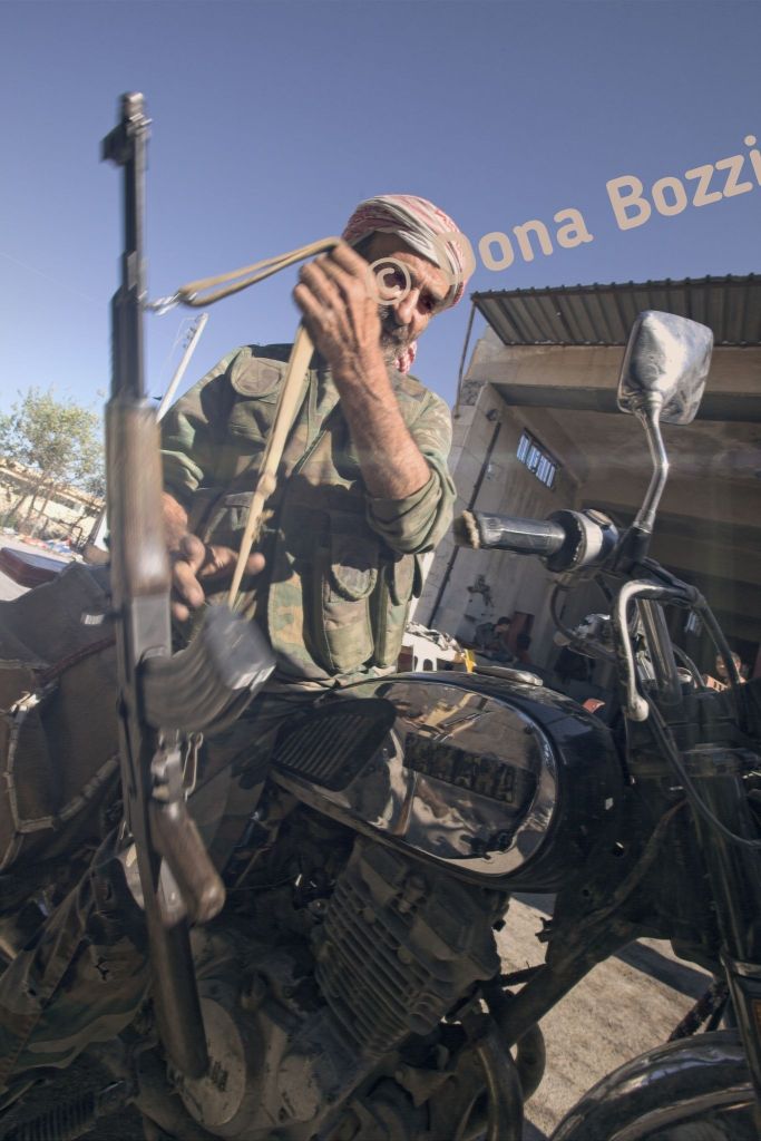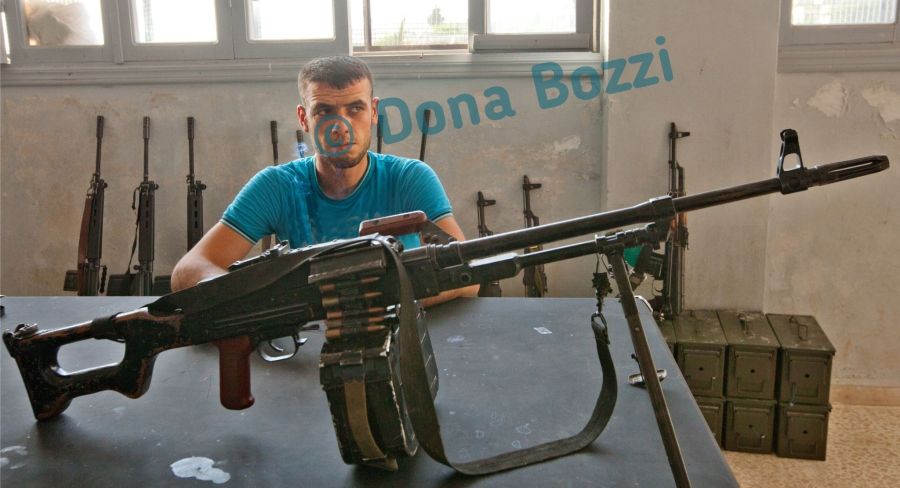 Of all the FSA commanders we met, Yaser Sokar, head of the Al-Aqsa brigade, an unprejudiced, soft-spoken man, is the only one who dared to shake our hands, wiping his own afterwards as a joke. The villages of Nubbul and Al-Zahra have been penetrated by Hezbollah; “Can the siege be broken by the SAA?”, we asked him. “No, never, we’ll eventually rout them out!” He gave us the green light to go to Jabbal Shewehna, a front line at the bottom of a hill a few kilometers from Hraytan. The Al Aqsa fighters stand on one side of the hill, and the regime troops stand on the other. “If we take this hill top, we’ll take all of Aleppo!” says one Al-Aqsa fighter, still foolishly trapped in the magical thinking of victory over “Gaahesh”, that’s what they call Bashar here from the donkey’s genes that shape his face. The rebels complained about the enemy’s superiority given its use of the Shilka, a tank with a sniper capable of shooting 2400 bullets per minute.