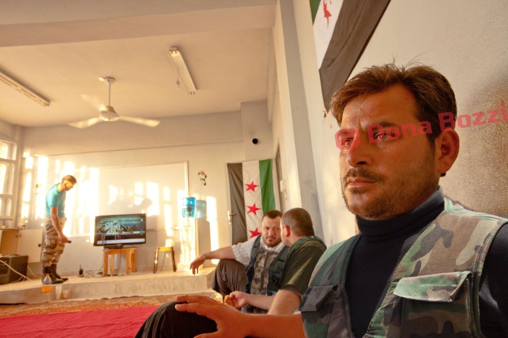Back at home, Hany for the second time in two days, suddenly wispered to us: ”speed, speed!”: we were ordered to pack up and leave. The heads up came from Abu Ammar, again calling the shots from Instanbul. Bashar’s army was about to surround the city, we had to get out immediately. We jumped in the car, Foud at the wheel, Hany in the front. In the back, on each side of us, a man with a gun. The non lethal assistance promised by the US to the opposition must have been in the mail, in that captain Foud Qotiny, three stars and the hawk of Quraish on his shoulder, didn’t have a satellite phone, and had to pull over to ask the farmers about the shabiha’s positions. In two hour, we were back to start at Mujahid’s house in Meadia. As a fixer, he was still dodging katyusha rockets when shuttling journalists back and forth from Meadia to Atmeh.