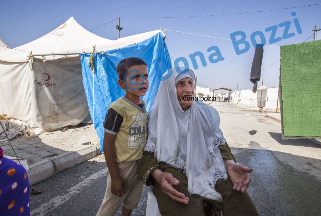 In the camp, Fahere Zerzore, 86 year old from Idlib with the attitude of a leader in her eyes, produced metaphorical gestures with her hands: she lifted them up in front of her belly, closing a circle as if to indicate a pregnant woman. Then she lifted her arm, and vigorously dropped her virtually armed fist to rip her body.